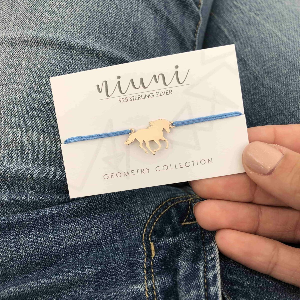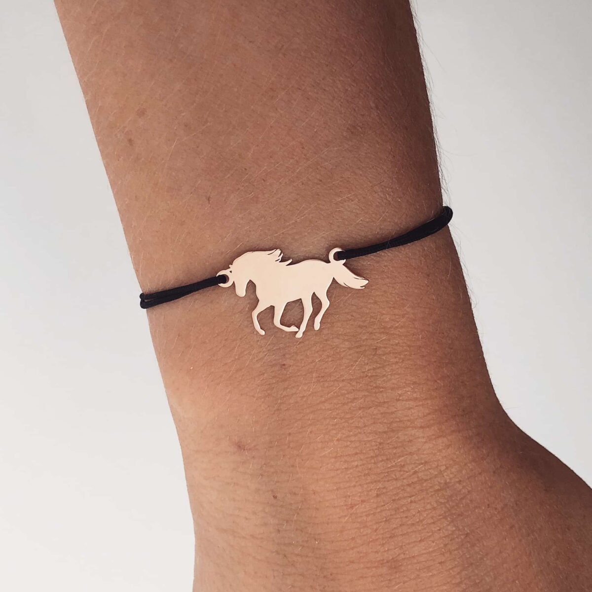 Náramok s príveskom “kôň” zo striebra 925 pozláteným ružovým zlatom.