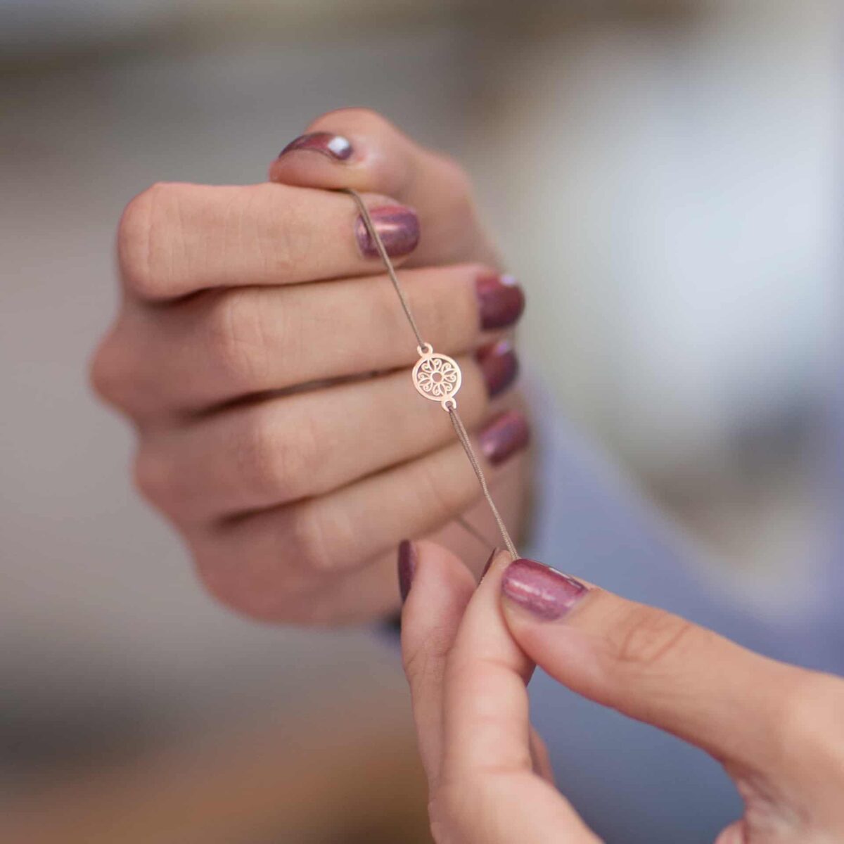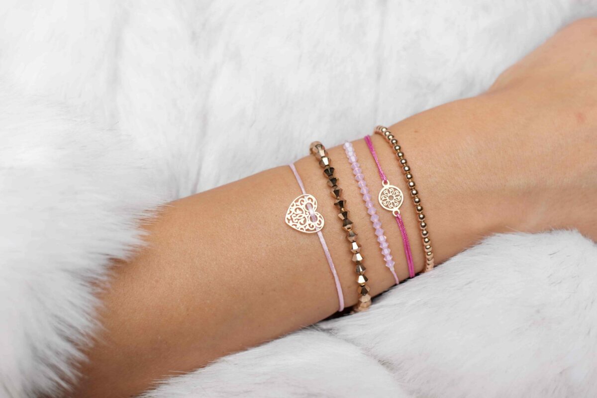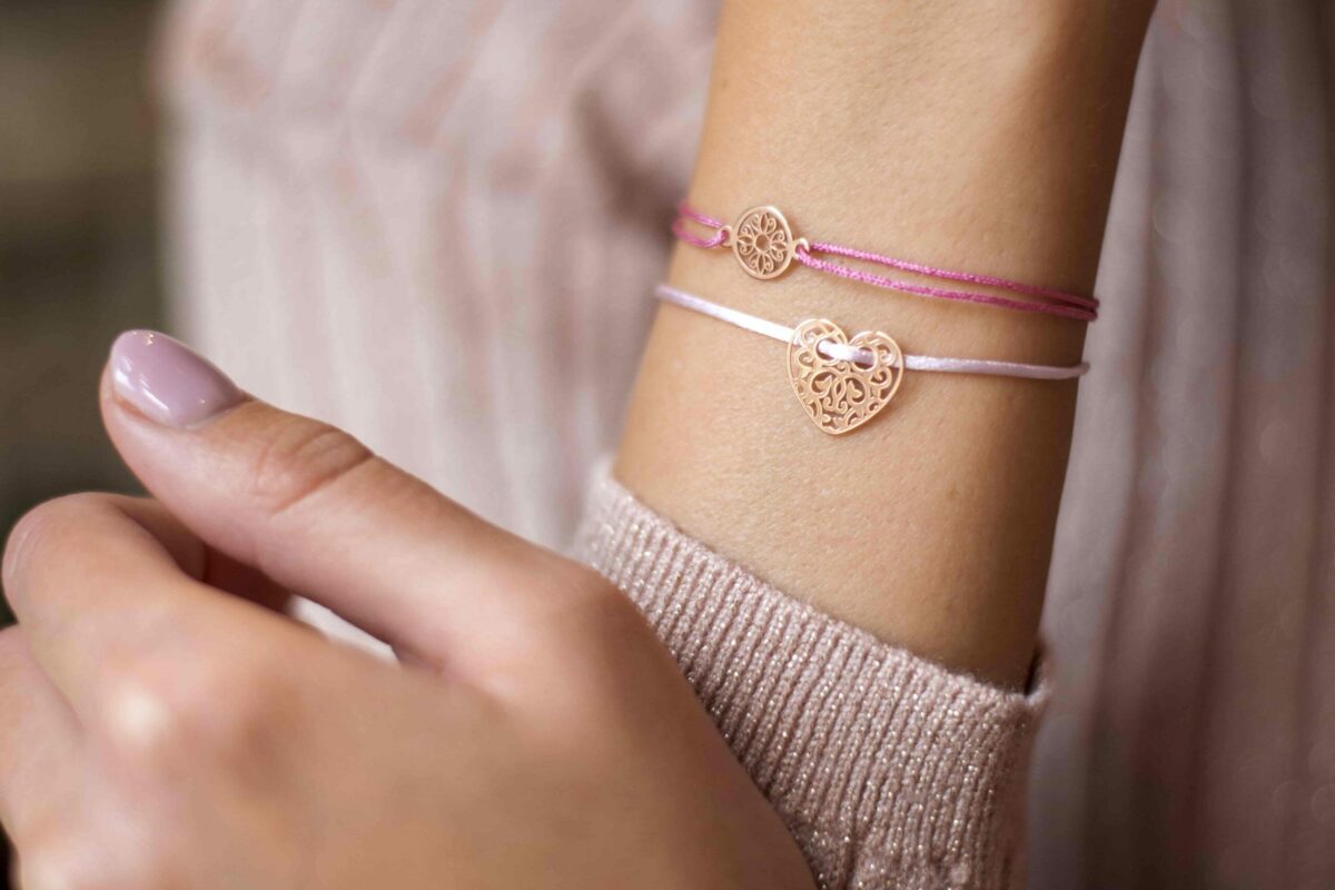 Náramok s príveskom “rozeta malá” zo striebra 925 pozláteným ružovým zlatom.