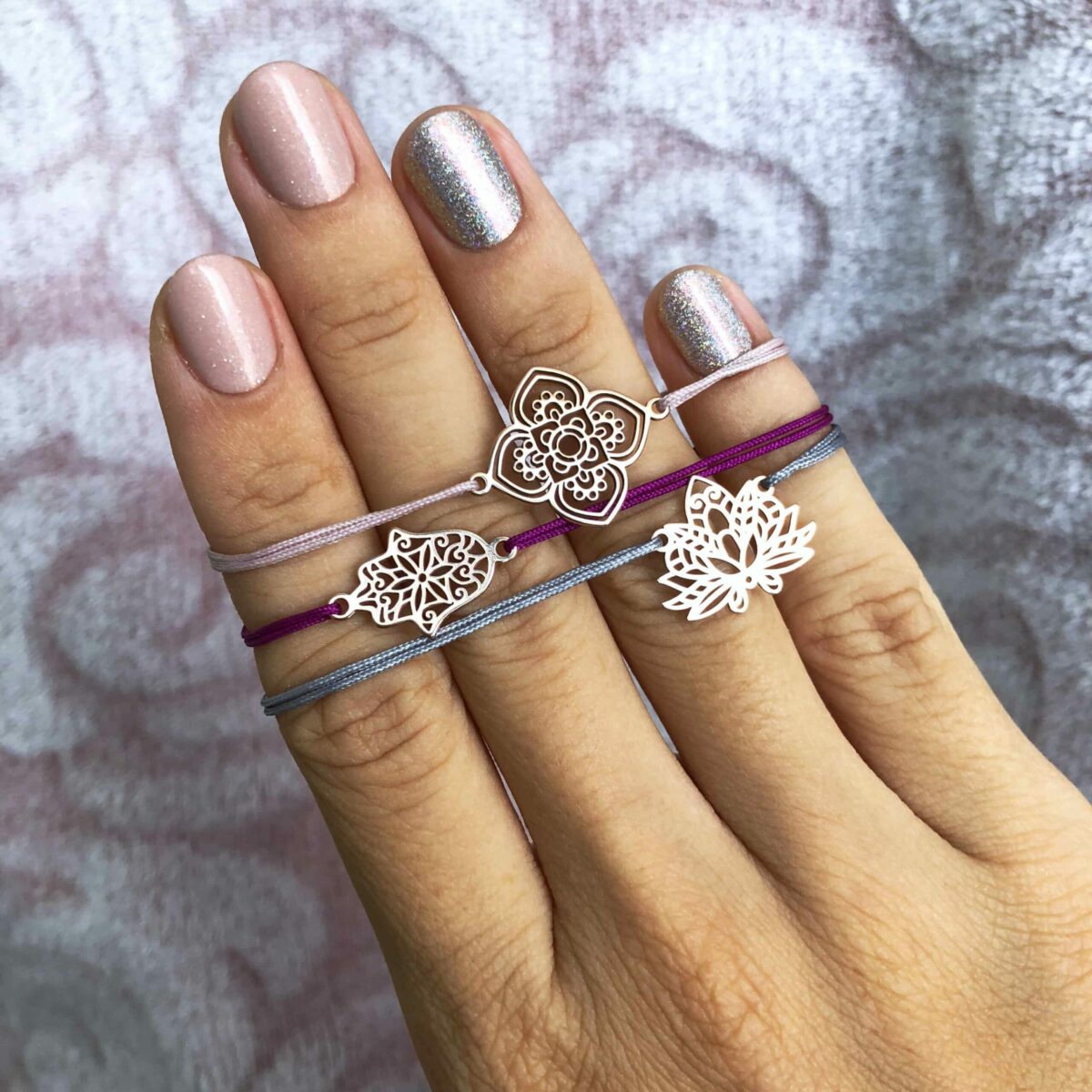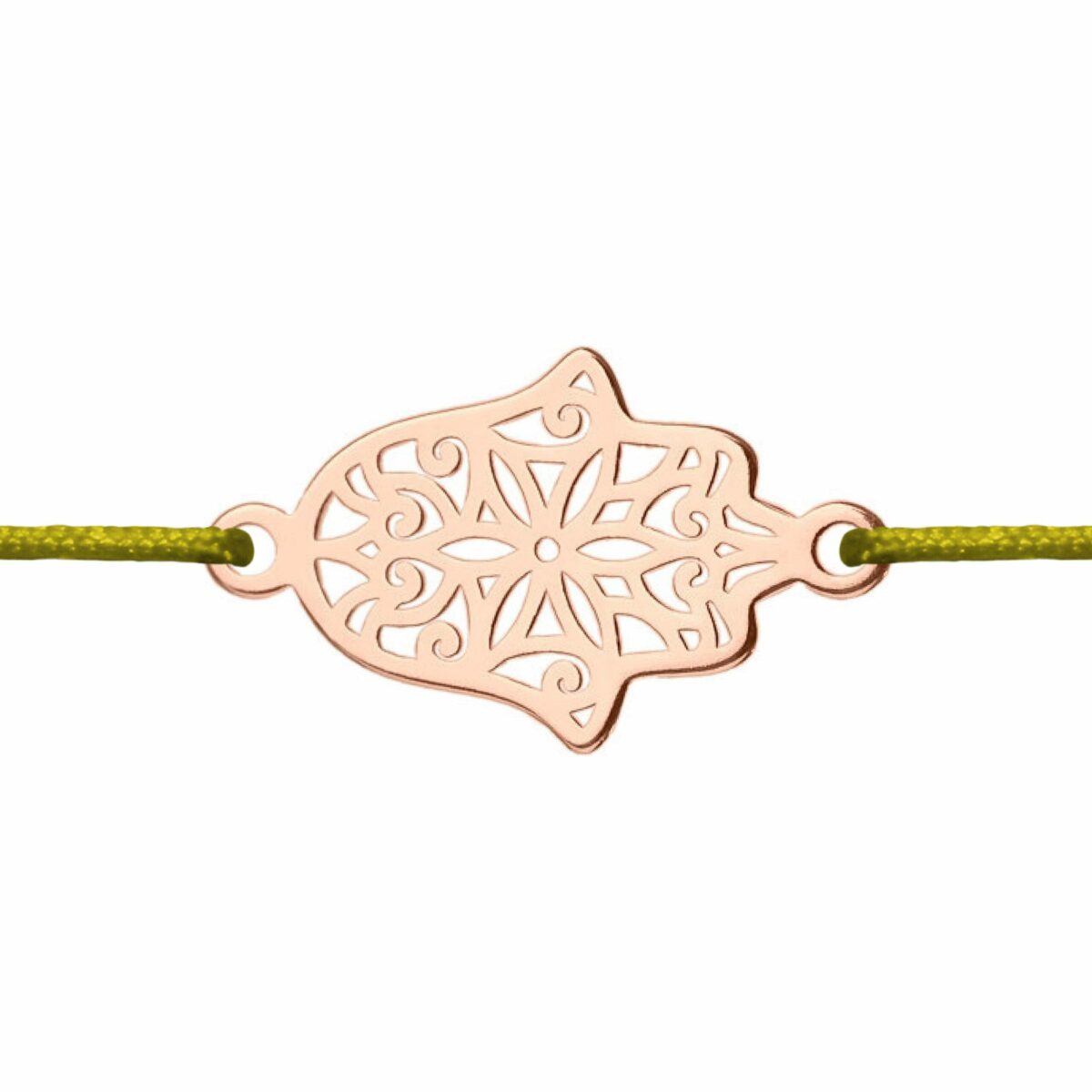 Náramok s príveskom “ruka hamsa” zo striebra 925 pozláteným ružovým zlatom.