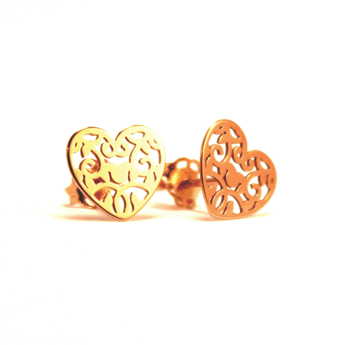 Náušnice “filigránové srdce” zo striebra 925 pozlátené ružovým zlatom.