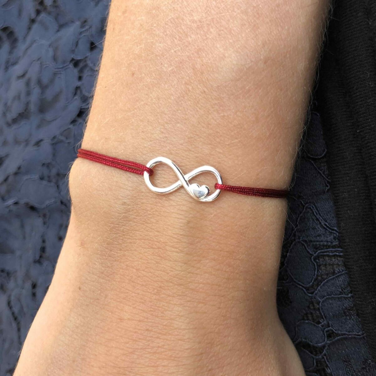 Náramok s príveskom “srdiečko infinity” zo striebra 925.