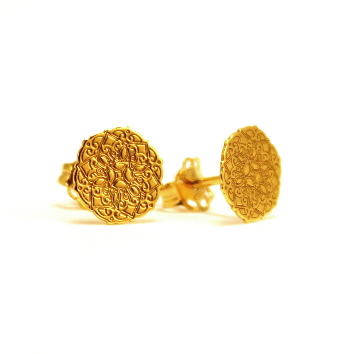 Náušnice “mandala” zo striebra 925 pozlátené 24 karátovým zlatom.