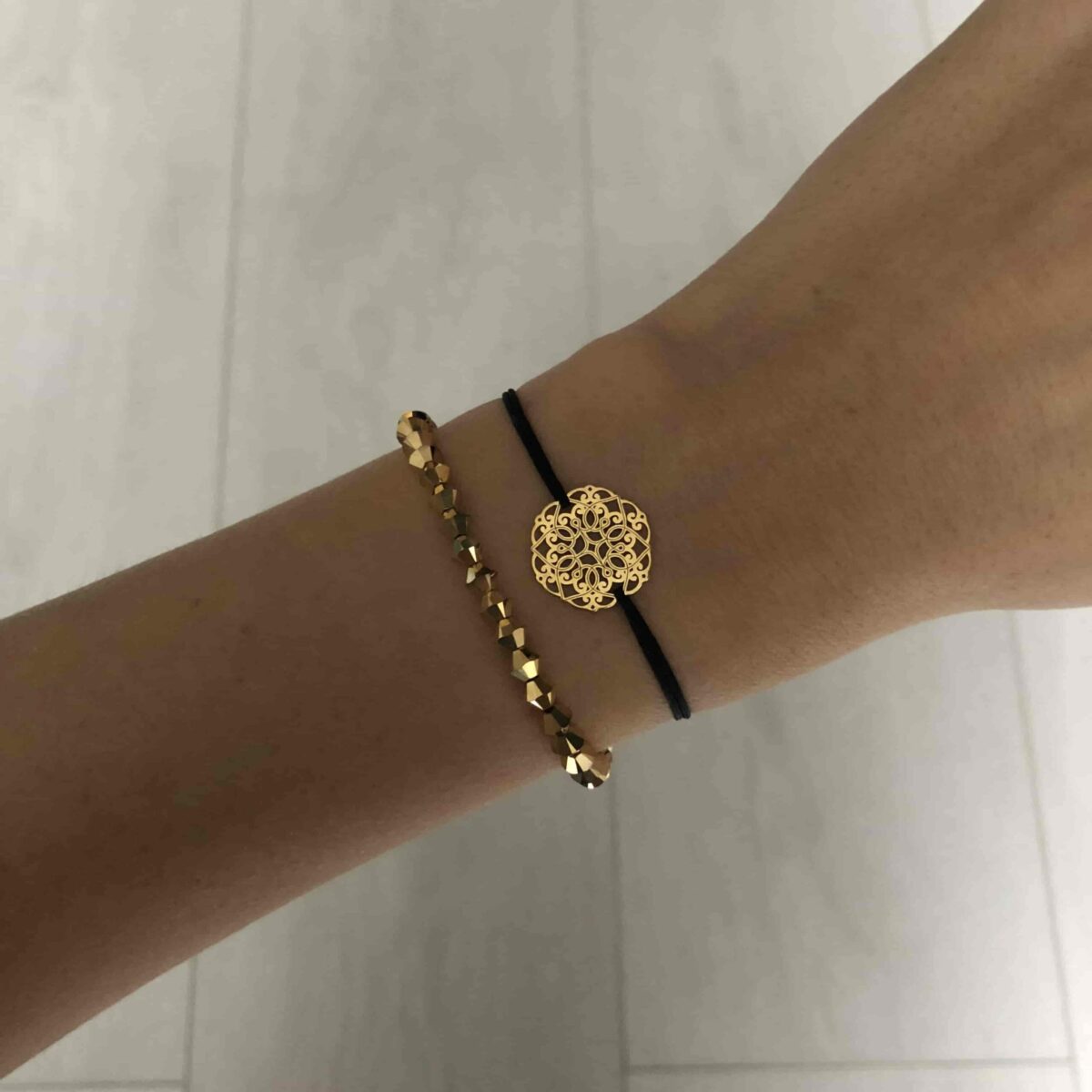 Náramok s príveskom “mandala” zo striebra 925 pozláteným 24 karátovým zlatom.
